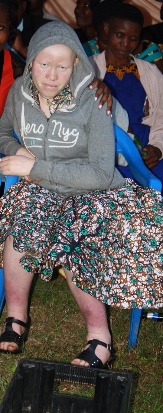 Daher meiden viele Menschen mit Albinismus ein Leben in der Öffentlichkeit. Kinder mit Albinismus gehen oft nicht zur Schule. Ihre besonderen Bedürfnisse werden nicht berücksichtigt. Selbst einfachste Hilfsmittel wie Sonnencreme zum Schutz vor dem erhöhten Hautkrebsrisiko oder Brillen gegen die Beeinträchtigung der Sehfähigkeit sind nicht verfügbar. AfrikanerInnen mit Albinismus werden von der Gesellschaft isoliert und diskriminiert. Ohne Bildung haben sie später kaum Chancen auf einen Job und sind damit einem besonders hohen Armutsrisiko ausgesetzt (Quelle: https://wfd.de/thema/albinismus).